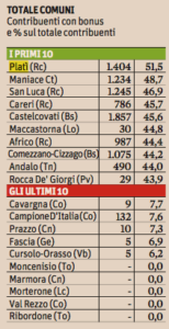 LAMEZIA TERME Platì “Core ‘ngrato”, si potrebbe dire citando il testo di un grande classico della canzone napoletana – ma scritto da un calabrese, Alessandro Sisca di San Pietro in Guarano. La strofa sorge spontanea dando un’occhiata ai dati pubblicati martedì dal Sole 24Ore. Il quotidiano di Confindustria dedica una pagina a raccontare i big data del ministero delle Finanze: distribuzione del reddito, dei ricchi e dei poveri. E, a fondo pagina, una ricostruzione “geografica” del bonus da 80 euro introdotto nel 2014 dal governo Renzi. Ricostruzione che offre più di una sorpresa. Infatti, il Comune più beneficiato d’Italia è Platì, in provincia di Reggio Calabria, fresco di un nuovo commissariamento. Un posto dove la democrazia stenta ad affermarsi ma i “ritrovati” della politica contro la povertà attecchiscono piuttosto in fretta. Tant’è che più della metà dei contribuenti ha ricevuto il bonus Renzi: 80 euro ciascuno per una delle misure politicamente più criticate degli ultimi anni. Con tanto di accuse di assistenzialismo al Partito democratico. «Un espediente per aumentare il consenso», recitavano le opposizioni. Bene (anzi male, per il Pd), gli 80 euro sono stati inutili, sul piano elettorale. Quasi dannosi, stando alle percentuali racimolate dai dem il 4 marzo. «Nella Calabria profonda – sentenzia il Sole 24 Ore – gli effetti elettorali dello sconto fiscale sono stati a corta gittata; e il 4 marzo il Partito democratico si è fermato a un modestissimo 5,4%, che ha fatto evaporare i quattro quinti dei voti ottenuti alle Europee del 2014, quando il bonus era fresco di introduzione e il Pd di Platì volò al 27,6%. Una storia piccola, e viziata da dinamiche locali, che segna però solo un capitolo dell’inaspettato protagonismo calabrese nella distribuzione del bonus».