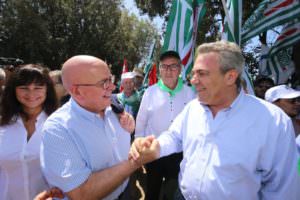Mario Oliverio e Luigi SbarraIL SUD E IL PAESE Anche il presidente della Giunta regionale, Mario Oliverio, ha celebrato il Primo Maggio a Carfizzi, da sempre un luogo simbolico per eccellenza. In località “Montagnella” cento anni fa i braccianti agricoli del Crotonese festeggiarono la prima festa del Lavoro. «Ringrazio -ha detto Oliverio nel corso del suo breve saluto- Cgil, Cisl e Uil che hanno deciso di festeggiare quest’anno il Primo Maggio alla Montagnella, un luogo simbolico e carico di significato per i nostri braccianti agricoli. Per la Calabria e per il Mezzogiorno il lavoro, o meglio, la mancanza di lavoro, è la vera, unica, grande questione, il nodo centrale da affrontare e risolvere. Il dato della disoccupazione giovanile è una grande piaga che deve essere affrontata senza tentennamenti e perdite di tempo. Senza lavoro non ci può essere nessuna ripartenza, nessuna prospettiva, nessuna possibilità di riscatto e di crescita. Il fatto che le organizzazioni sindacali abbiano scelto di festeggiare la Festa del Lavoro qui, in questo luogo altamente simbolico, teatro di mille lotte, lo considero un grande impegno ed una grande attenzione verso la Calabria e il Mezzogiorno. La nostra terra e l’intero meridione ripartono se c’è lavoro, ma esso si crea se c’è un grande piano nazionale di investimenti per creare lavoro al sud, per arrestare l’emorragia che è rappresentata da tantissimi giovani che abbandonano la propria terra dopo aver studiato e acquisito una laurea nelle nostre università. Io credo -ha concluso il presidente della Giunta regionale- che il Sud e la Calabria possono diventare una grande risorsa per il Paese, a condizione che vengano assunti come cuore delle politiche nazionali. Il messaggio che parte oggi dalla Calabria, dalla Montagnella, è un messaggio forte e chiaro e chiede al Paese di riaccendere i riflettori sul Sud e sulla Calabria con la chiara consapevolezza che se riparte il Mezzogiorno, riparte l’intero Paese»