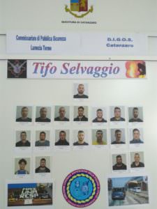VENTI ARRESTI Sono venti gli ultrà del Catania raggiunti dall’ordinanza di custodia cautelare in carcere emessa dal gip di Lamezia Terme nell’ambito dell’inchiesta, denominata “Tifo selvaggio”. Uno di loro era stato fermato subito dopo l’aggressione dalla polizia in Calabria. Diciotto ultrà sono stati arrestati a Catania e un altro dalla Digos di Enna. A tutti e venti è stato notificato il provvedimento di Daspo emesso dal Questore di Catanzaro.