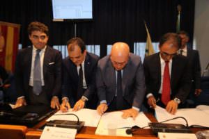 Seduta straordinaria per la firma di un’intesa sulla mobilità della città. Abramo: «Giornata storica», per Bruno «salto di qualità per il territorio». I 5 Stelle fanno da “guastafeste”. Ma per la sa…