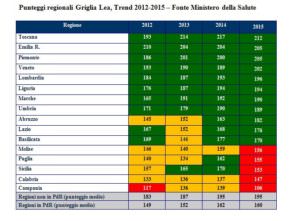 La tabella seguente mette in evidenza i divari regionali fra i Lea delle regioni italiane