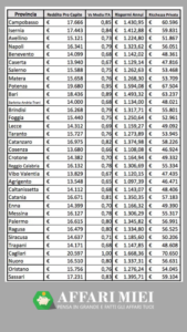 Per ottenere questi valori ho consultato anche i dati raccolti dalla FABI, che ha dichiarato che il patrimonio bancario complessivo nostro e dei nostri connazionali è di 4.300 miliardi di Euro: dividendo questa somma per il totale degli abitanti dello Stivale, ho “ottimizzato” la media italiana rapportandola al reddito delle province.