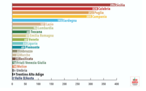 DATI REGIONALI Se analizziamo i dati regionali degli ultimi cinque anni – dal 2013 al 2017 – è la Sicilia la regione più colpita con 396 casi censiti. A seguire la Calabria con 328 casi, la Puglia con 312 e la Campania con 305. Quinto posto per la Sardegna, con 193 intimidazioni. Al sesto posto il Lazio con 127 casi è la prima Regione del Centro – Nord, davanti a Lombardia (96 casi), Toscana (68 casi), Emilia-Romagna (65 casi) e Veneto (60 casi).