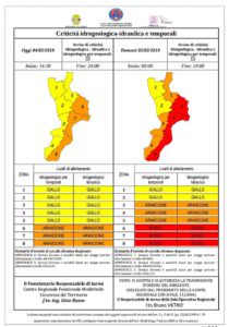 tirrenica delle province di Reggio Calabria e Vibo Valentia, dove il codice di allerta è arancione. «Sono previste – fanno sapere dal Multirischi Arpacal – dal pomeriggio di oggi e per l’intera giornata di domani, piogge diffuse più intense sulle zone centro meridionali. Anche la ventilazione sarà sostenuta con venti da forti a burrasca e mareggiate lungo le coste. Dalla giornata di mercoledì, invece, ci sarà un progressivo miglioramento delle condizioni meteo». Per quanto concerne l’operatività del Sistema di protezione civile regionale, i Comuni del versante ionico centro meridionale sono stati posti in fase operativa di Pre-allarme, gli altri in fase di Attenzione. Il Centro funzionale, comunque, seguirà in regime h24 l’evolversi della situazione in contatto con il dipartimento nazionale della Protezione civile, le Prefetture – U.T.G. e la Protezione civile regionale.