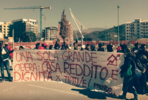 Dopo la manifestazione davanti alla Prefettura, attivisti e occupanti degli alloggi si sono spostati sul cantiere di viale Giacomo ManciniFUMATA NERA «Sono cinque mesi che attendiamo la soluzione proposta dall’amministrazione comunale – spiega Giuseppe Bornino di Prendocasa –. Il Comune si era impegnato nell’avviare un’attività di ricerca per trovare stabili da destinare alle famiglie che si trovano a vivere negli stabili occupati. Non possiamo che constatare che questo lavoro si è rivelato fallimentare per la negligenza dei dirigenti. Dall’incontro-lampo che abbiamo avuto con la prefettura abbiamo ricevuto l’invito a continuare a parlare con il Comune per scongiurare gli sgomberi». Sono settimane che gli incontri tra il prefetto ed il primo cittadino vanno avanti: tra gli argomenti, anche quello dell’emergenza abitativa. «Abbiamo dato la nostra massima disponibilità alla soluzione che ci era stata offerta nel mese di ottobre dicono gli attivisti riuniti nel sit-in –. Abbiamo fatto i censimenti, sistemato la posizione degli occupanti con gli assistenti sociali, non possiamo abbassare la guardia e ritrovarci sgomberati».