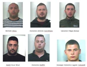 GLI ARRESTATI I carabinieri della Compagnia di Palmi hanno dato esecuzione ad un’ordinanza di custodia cautelare, emessa dal GIP presso il Tribunale di Palmi, su richiesta della locale Procura della Repubblica, nei confronti di 7 persone di seguito indicate, a vario titolo ritenute responsabili di “rapina”, “falsificazione di monete”, “furto”, “ricettazione”, “danneggiamento”, “delitti in materia di armi e in materia di stupefacenti”: