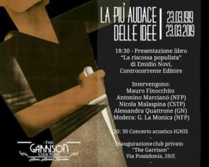 CELEBRAZIONE (NON POI COSÌ PRIVATA) DEL FASCISMO Il pretesto è la presentazione del libro “La riscossa populista” dell’ex senatore di Forza Italia Emidio Novi, ma il reale motivo è la celebrazione del centenario della fondazione dei “Fasci di combattimento”.