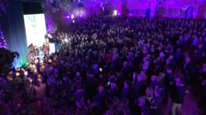Dietro a Occhiuto, sul palco, si staglia un enorme vidiwall su cui viene proiettato il video di presentazione, nel quale vengono messi in fila i successi ottenuti dal sindaco a Cosenza. Poi il candidato in pectore prende gli appunti e iniziata a illustrare il suo piano.