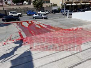 Un uomo e una donna a volto coperto lo hanno posizionato davanti all’ingresso e poi hanno versato un secchio di vernice rosso sangue. Il gesto è stato rivendicato dal collettivo “Fem.In Cosentine in…