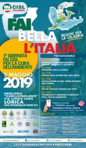 SAN GIOVANNI IN FIORE Ricco e composito il programma di “Fai bella l’Italia” che in Calabria si svolgerà domenica 5 maggio a Lorica. L’iniziativa, organizzata da Fai Cisl per accendere i riflettori sul patrimonio paesaggistico presente in regione e sulla sua tutela, prevede diversi momenti d’incontro ma soprattutto azioni concrete a salvaguardia dell’ambiente. Si parte alle 9.30 con il ritrovo dei partecipanti nei pressi della griglieria “Il Brillo parlante” in via Lungo Lago di Lorica dove verranno consegnati guanti, magliette e sacchetti per la pulizia della sponda del lago Arvo. Alle dieci ci sarà un briefing con la stampa per spiegare le motivazioni dell’iniziativa e delle strategie portate avanti dall’organizzazione sindacale a tutela della biodiversità e delle aree interne della regione. Ma anche un momento di confronto tra parti sociali, associazioni ed istituzioni.