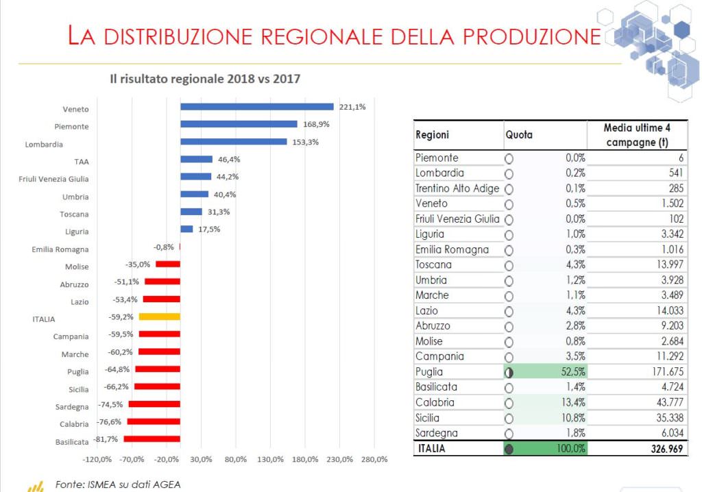 La campagna 2018-2019 si è chiusa con una flessione senza precedenti. La causa principale è stato il maltempo. Statti: «Resta la qualità la nostra arma in più»