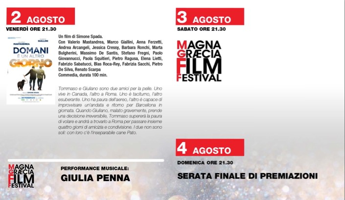 CATANZARO Il “Magna Graecia Festival” di Catanzaro raddoppia: cinema e non solo, perché la 16esima edizione della kermesse fondata e diretta dall’incontenibile Gianvito Casadonte sarà caratterizzata anche da una rassegna letteraria che arricchirà la già straordinaria rassegna cinematografica. Dal 27 luglio al 4 agosto, presso l’area del porto di Catanzaro, un’altra occasione imperdibile per immergersi nel mondo del cinema e conoscerne gli effetti più accattivanti attraverso proiezioni di film, masterclass, incontri e dibattiti con attori – star e talenti emergenti – e registi italiani di grande successo e volti celebri del cinema mondiale.