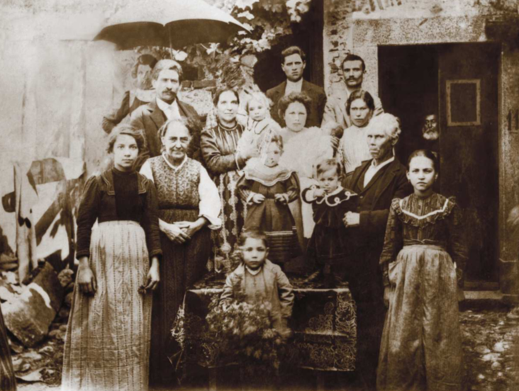 La famiglia Timpano (“Fatunedha”) nel quartiere “Zzàccanu”, in posa di fronte alla casa di mastro Bruno, che si vede seminascosto dalla porta (Stampa fotografica del 1965 da un originale perduto, collezione privata)IL MANOSCRITTO Pisani è uno storico dell’arte che ha scritto molti saggi (tra l’altro è stato direttore del Museo Civico di Rende, è socio della Deputazione di Storia Patria per la Calabria ed è coordinatore del Comitato Scientifico della rivista Esperide) e il suo nome è legato alla storia di Serra perché il padre, Giuseppe Maria Pisani, è stato un grande artista che dalle ormai scomparse botteghe degli artigiani serresi ha tratto insegnamenti che lo hanno portato a lasciare segni indelebili in questi luoghi, tra i quali anche un busto di “mastro” Bruno che tuttora si può ammirare nel cortile di Palazzo Chimirri. È stato proprio Domenico Pisani a trovare le diciotto pagine manoscritte, di cui pubblica anche le immagini, che hanno riacceso il mistero. Stando alla sua ipotesi il quaderno è «coevo» del poeta e, ancorché parziale, è «prezioso per la sua unicità» perché «può essere considerato la trascrizione di uno dei manoscritti perduti redatti dalla figlia del poeta, Maria Stella, oppure, come è tradizione, da un’amica della ragazza». Secondo Pisani, insomma, il manoscritto potrebbe essere una copia, coeva e dunque priva di modernizzazioni linguistiche, dell’originale andato perduto. Gli scritti ritrovati, che comprendono anche un altro foglio mutilo rinvenuto sempre da Pisani, contengono una decina poesie di “mastro” Bruno, tra le quali ci sono tre inediti: un sonetto scritto nel 1896 in occasione «dello sposalizio di don Peppino Pisani e di donna Luigina Barillari»; un altro (quello del foglio mutilo) dedicato a monsignor Giuseppe Barillari, vescovo coadiutore di Cariati, che reca in calce la scritta «Vi bacia rispettosamente la mano il vostro servo Bruno Pelaggi», e che Pisani attribuisce direttamente alla figlia Maria Stella confrontandone la grafia con la firma apposta in calce all’atto di successione del padre; infine un’altra poesia, dedicata a “Chichiriddì” o “Chichirichì”, che si conosceva già però mancante di 20 strofe e con una in più di cui invece nel manoscritto non c’è traccia. Una scoperta che porta dunque a 31, in totale, le poesie ora attribuite a Pelaggi «tra quelle mutile, quelle complete e quelle considerate problematiche». Ma le novità non sono finite. Pisani infatti, confrontando il manoscritto con le poesie pubblicate nella prima edizione di Angelo Pelaia, segnala che «significative difformità si trovano nei titoli e in alcuni versi». La più interessante, a suo parere, riguarda la famosa poesia conosciuta come “A Umberto I° re d’Italia” o come “Lettera ad Umberto I”. Nel manoscritto scoperto da Pisani il titolo è completamente diverso, come differente è anche il monarca destinatario: “Lamienti calabrisi. A sua maestà Vittorio Emanuele III re d’Italia”.