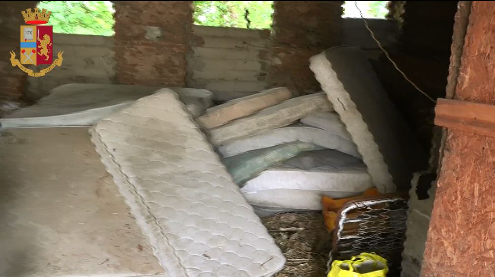 STIPATI IN STANZONI Secondo quanto emerso dalla indagini, gli stranieri, tutti privi di mezzi di sostentamento, giunti in passato in Italia con sbarchi umanitari, prevalentemente regolari sul territorio nazionale, venivano fatti alloggiare all’interno della masseria in due stanzoni, illuminati con lampadine collegate a fili elettrici volanti, al cui interno erano ammassate brandine e materassi. I migranti disponevano di servizi igienici comuni all’aperto collocati nelle immediate vicinanze di un fienile con maiali e galline e si servivano di un garage adibito a cucina, ove si districavano tra bombole di gas e fornelli, con seri rischi anche per la propria incolumità.