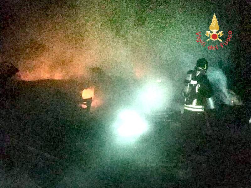 L’intervento dei vigili a Magisano ha evitato che le fiamme si propagasse ad alcuni capannoni vicini. I carabinieri hanno avviato le indagini