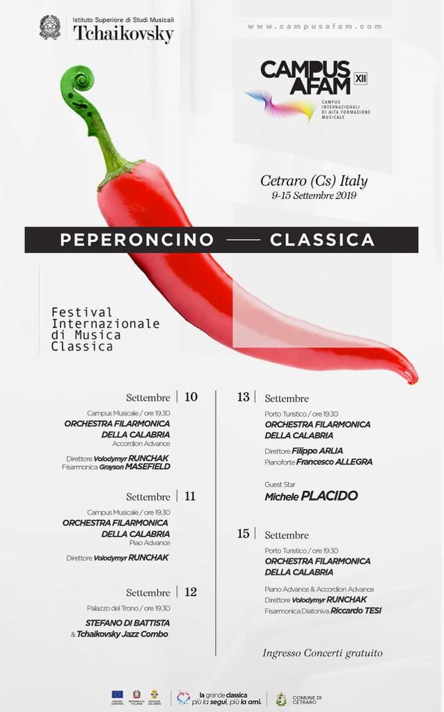 CETRARO Venerdì 13 settembre 2019, alle 18, nella sala del Palazzo del Trono di Cetraro, nell’ambito delle iniziative organizzate per il Campus Internazionale di Alta Formazione Artistica e Musicale, si terrà la conferenza stampa destinata rendere noti i contenuti del progetto relativo alla formazione di un’Orchestra stabile della Calabria.