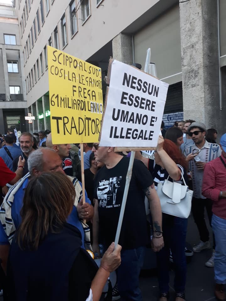 IL CORTEO Quasi in contemporanea con l’arrivo in città di Salvini, poi, da piazza dei Bruzi è partito un corteo diretto al teatro Morelli, luogo in cui si teneva la manifestazione della Lega. Il torpedone “meticcio”, che secondo gli organizzatori conta tra 2mila e 3mila persone, si è snodato tra le vie che uniscono il municipio di Cosenza alla città vecchia preceduto dallo stendardo “Stutamu Salvini – Cosenza non si Lega”, slogan che ha segnato i giorni della mobilitazione contro l’arrivo del leader sovranista. Molti i migranti che hanno sfilato assieme agli attivisti e agli ultrà della città, da sempre in prima linea per difendere i diritti e l’accoglienza.