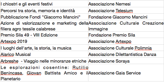 Gli eventi di marketing territoriale finanziati dalla Camera di commercio nel 2018 e 2019 nel Comune di Cosenza: