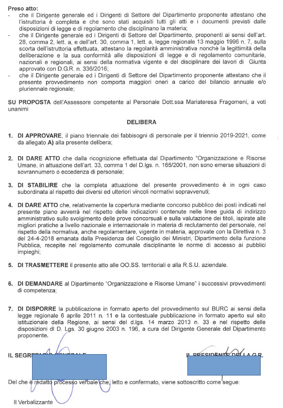 «Tutto sarebbe partito da una richiesta della segreteria di giunta (del 18 gennaio 2019) – scrive il sindacato – in cui si chiedeva alla Responsabile regionale Privacy se fosse conforme alla normativa la pubblicazione dell’atto con le firme autografe (così si legge nella comunicazione) del presidente della Giunta, del segretario generale, degli assessori e dei dirigenti. La richiesta viene reiterata più recentemente, l’8 ottobre, e stavolta nel giorno successivo la Responsabile privacy si raccomanda di non pubblicare le firme per esteso. E fin qui ci possiamo anche stare: la firma autografa potrebbe essere illegittimamente replicata ed utilizzata da terzi e quindi è comprensibile l’oscuramento della stessa».