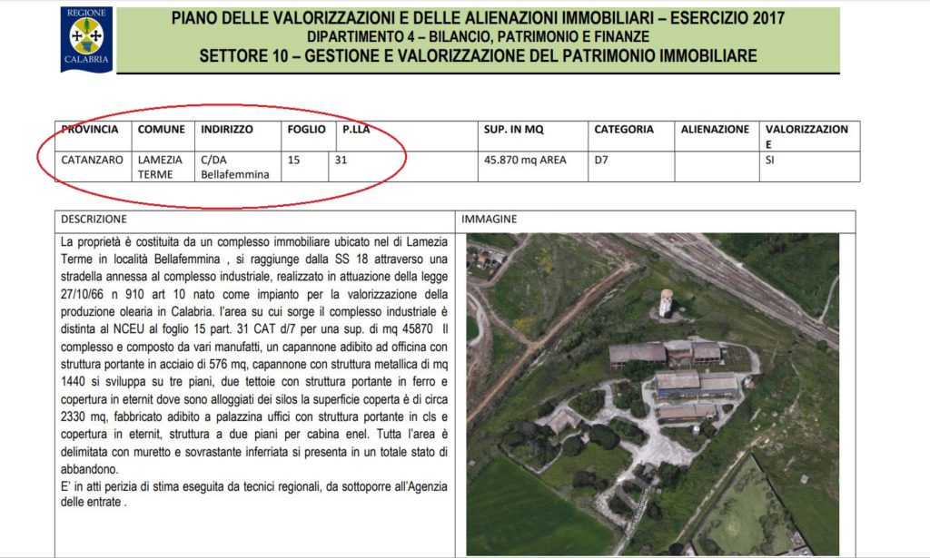 L’opificio è di proprietà della Regione Calabria, nell’ultimo piano di alienazioni disponibile è inserito tra i beni in vendita. Poco più di 425mila euro il valore stimato, e giova ricordare che per costruirlo furono investiti tra fondi europei e nazionali 9 miliardi delle vecchie lire. Tutti soldi pubblici che evidentemente non sono stati utili a generare sviluppo e ricchezza sul territorio. Ma viceversa finiti per realizzare una struttura fatiscente che ora è divenuta un problema.