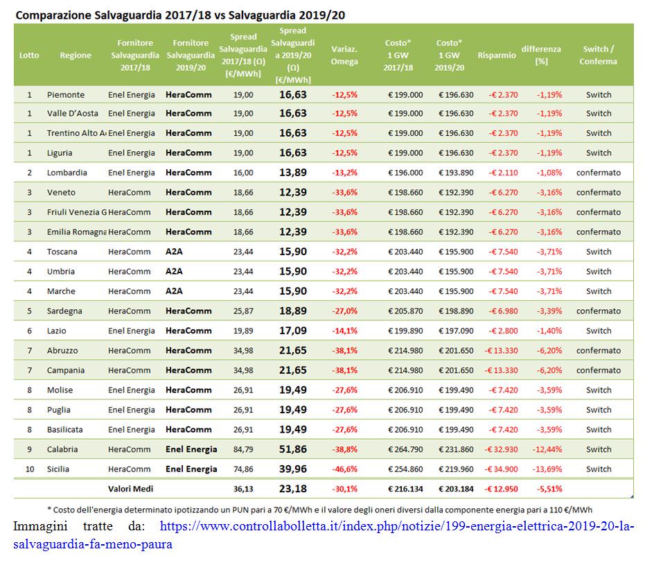 Per Lombardia, Veneto ed Emilia Romagna, ad esempio le tre regioni che hanno chiesto l’autonomia differenziata, il fattore Omega è il più basso, “sceso” a 13,98€/MWh per la Lombardia [era a 16 nel 2017/18] e a 12,39 per le altre due [prima era 18,66].