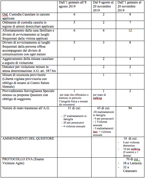 I DATI DELLA QUESTURA DI CATANZARO La Questura di Catanzaro ha diffuso i dati del fenomeno relativi alle attività della Polizia di Stato fino al 23 novembre scorso.