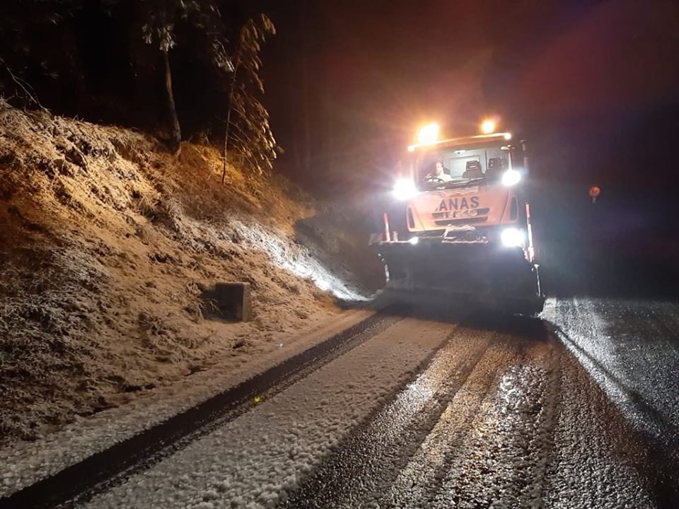 Accumuli di diversi centimetri, la circolazione risulta regolare. Al lavoro i mezzi dell’Anas