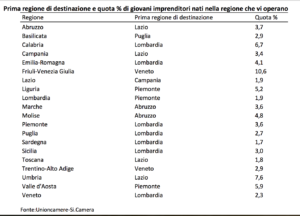 Per quanto riguarda la destinazione “prediletta” dai giovani imprenditori “esuli” dalla Calabria c’è la Lombardia. Qui il 6,7% di “under 35” che è andato via dalla Calabria ha aperto un’attività imprenditoriale. Ed è sempre la Lombardia tra le regioni più attrattive di nuovi imprenditori che provengono dal Mezzogiorno seguita poi dal Lazio.