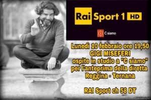 ROMA Lunedì 10 febbraio alle 19,50 Gigi Miseferi sarà ospite in studio a “C siamo” in onda su Rai Sport (visibile sui canali 57 e 58 del digitale terrestre), per l’anteprima della diretta di Reggina – Ternana, considerata partita di cartello del campionato di Lega Pro.