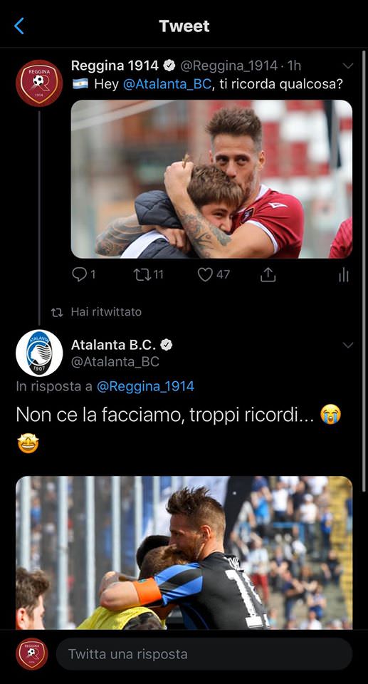 «Hey Atalanta, ti ricorda qualcosa?”», immediata la risposta degli orobici:«Non ce la facciamo, troppi ricordi…».