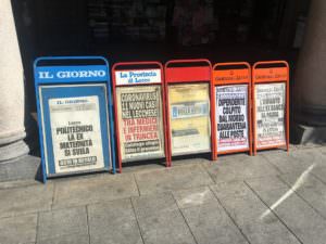 Ed ancora «Avvisiamo la gentile clientela che il nostro personale potrebbe usare le mascherine a scopo precauzionale, per cautelare la vostra salute». Già le mascherine. Un bene che a queste latitudini è divenuto introvabile. Il modello Ffp3 e Ffp2 – gli unici dicono gli esperti in grado di tutelare meglio – sono introvabili da giorni. Ma iniziano a scarseggiare anche quelli medicamentali mono uso. Anche se, per la verità, si vedono decisamente pochissime persone in strada ad utilizzarne una. Si acquista e si mette da parte, nel caso la situazione dovesse precipitare. Come a scarseggiare sono alcuni prodotti per la cura della persona: l’amuchina e l’alcool, su tutti.