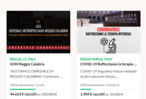 Attraverso la piattaforma di GoFundMe migliaia di donatori hanno già finanziato diverse campagne per sostenere i presidi calabresi a causa dell’emergenza da Covid-19