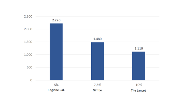 Se ci limitiamo ad una proporzione lineare rispetto alla popolazione del fabbisogno indicato dallo studio Remuzzi (4000 p.l.), per la Calabria vorrebbe dire allestire 132 p.l. intensivi nuovi. Tutto ciò non calcolando il delta di sottodotazione della Regione. D’altra parte la presidente Santelli ha già avuto modo di dichiarare (in data 9 marzo 2020) come i posti di terapia intensiva regionale siano già occupati dai pazienti non COVID-19, che come è naturale non possono essere dimessi.