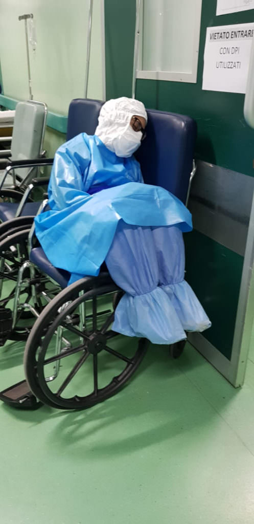 LA LETTERA «Buonasera – scrive la nostra lettrice – sono la mamma di una ragazza di 30 anni, Valentina, originaria di Reggio Calabria e oggi medico in un pronto soccorso della Lombardia, a Cantù. Vi mando questa foto perché per me fortemente emblematica nell’evidenziare lo stremo delle forze di questi nostri angeli… diciamo grazie… e quando tutto sarà finito ricordiamoci di loro… che giornalmente, ormai da tante settimane, rischiano la loro vita per salvarne altre… grazie». (f.p.)