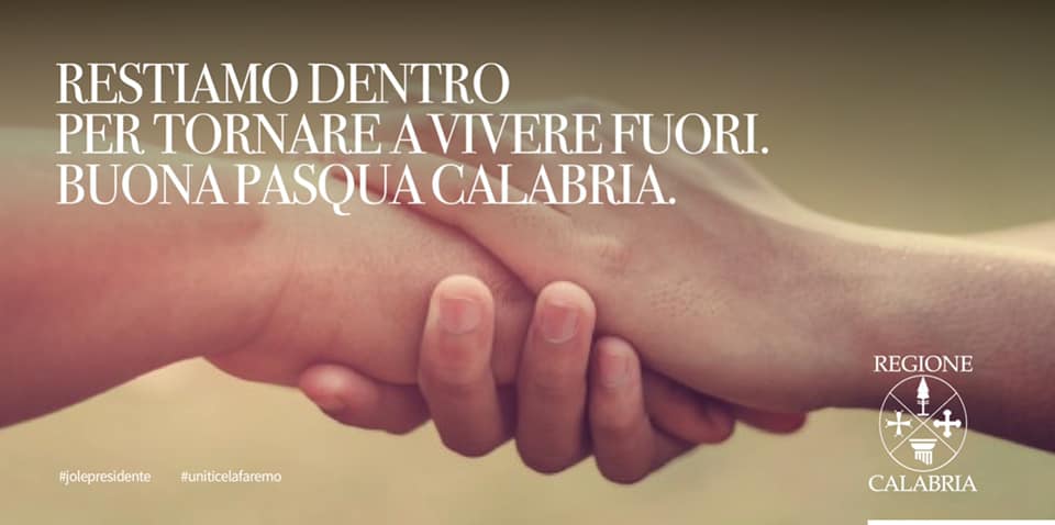 CATANZARO «Grazie a tutti i calabresi che stanno dimostrando grande senso di responsabilità in questo periodo difficile. Festeggeremo in una maniera insolita, in alcuni casi lontano dai nostri cari, senza i nostri amici, ma facciamolo per loro, facciamolo per noi. Buona Pasqua Calabria». Questi gli auguri di Buona Pasqua comparsi sui social della Regione Calabria e della governatrice Jole Santelli.