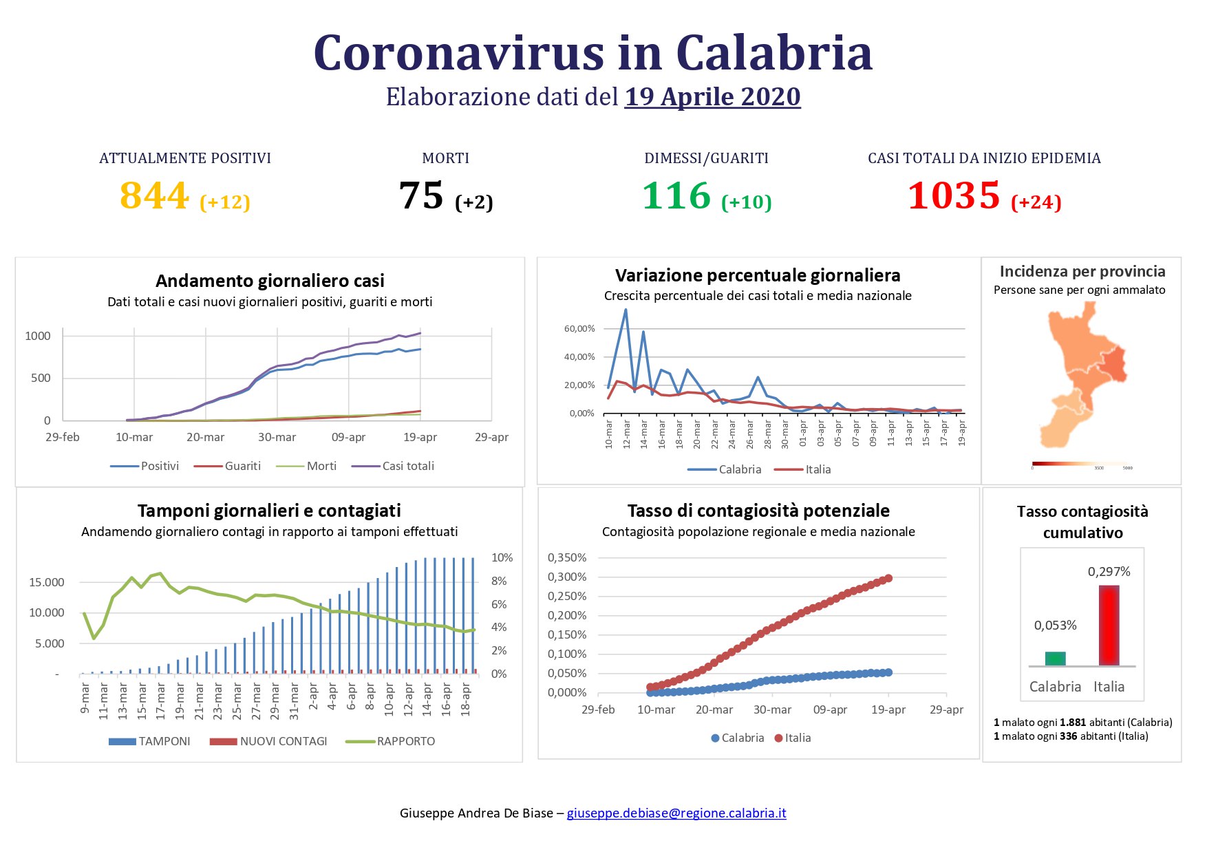 Nel conteggio sono compresi anche i due pazienti di Bergamo trasferiti a Catanzaro, mentre non sono compresi i numeri del contagio pervenuti dopo la comunicazione dei dati alla Protezione Civile Nazionale.