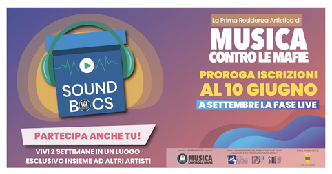 COSENZA La prima Music Farm a sfondo civile di Musica contro le mafie non si ferma, nonostante il difficile periodo che stiamo vivendo. “Sound Bocs”, il progetto di residenza artistica a Cosenza, supportato da “Perchicrea” di Mibact e Siae, si adatta ai cambiamenti. La direzione artistica ha già ricevuto più di 70 candidature, però considerate le difficoltà, ha deciso di prorogare la scadenza per le iscrizioni al 10 giugno e rinviare le Fasi Live a settembre per tutti coloro che aspirano ad essere tra i 10 artisti residenti impegnati nella creazione di brani inediti e originali ispirati alla diffusione di buone idee e buone pratiche. E’ possibile inviare la propria candidatura a questo link.