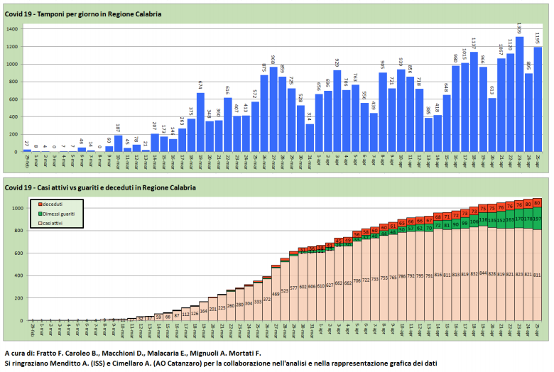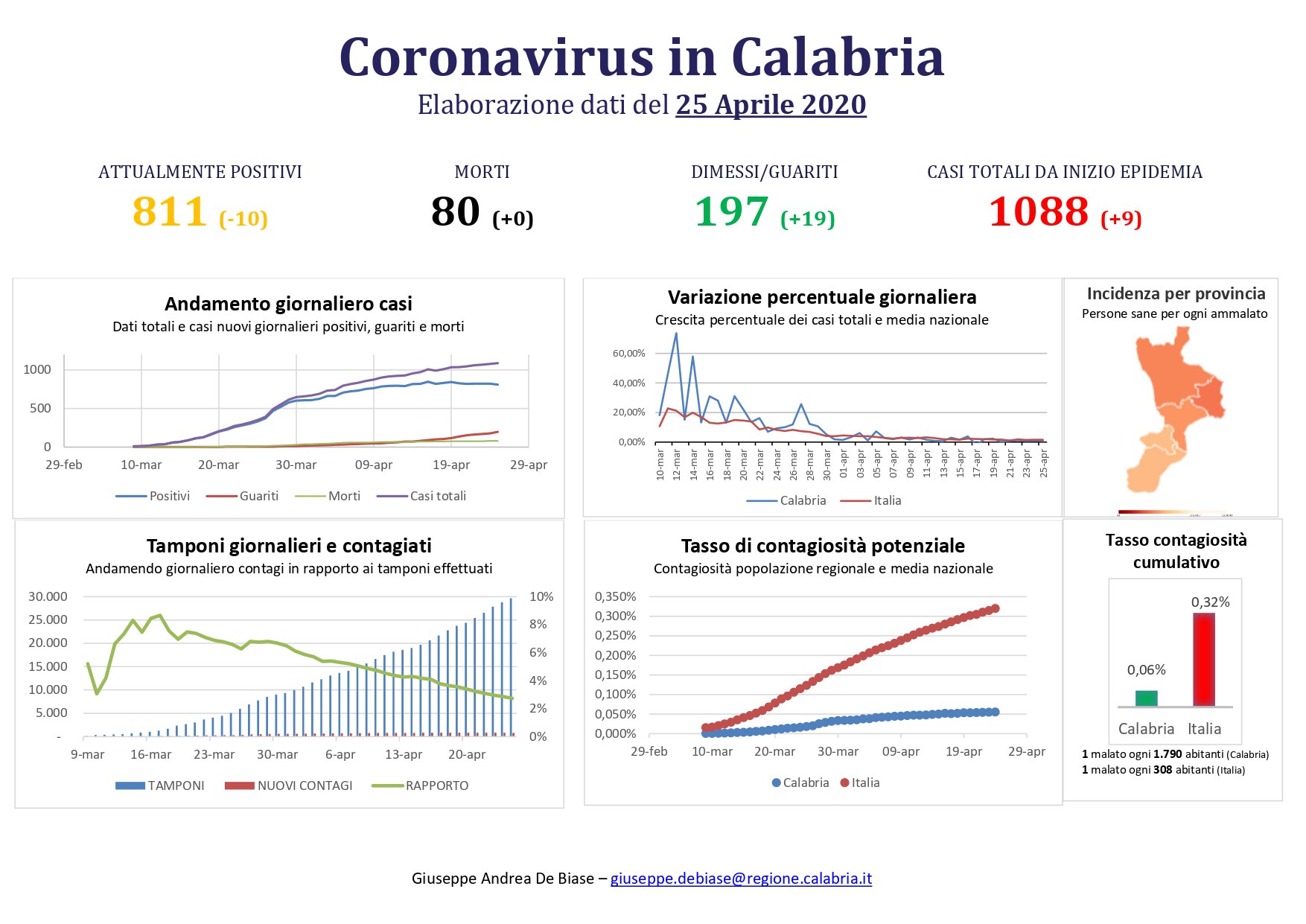 Nel conteggio sono compresi anche i due pazienti di Bergamo trasferiti a Catanzaro, mentre non sono compresi i numeri del contagio pervenuti dopo la comunicazione dei dati alla Protezione Civile Nazionale.