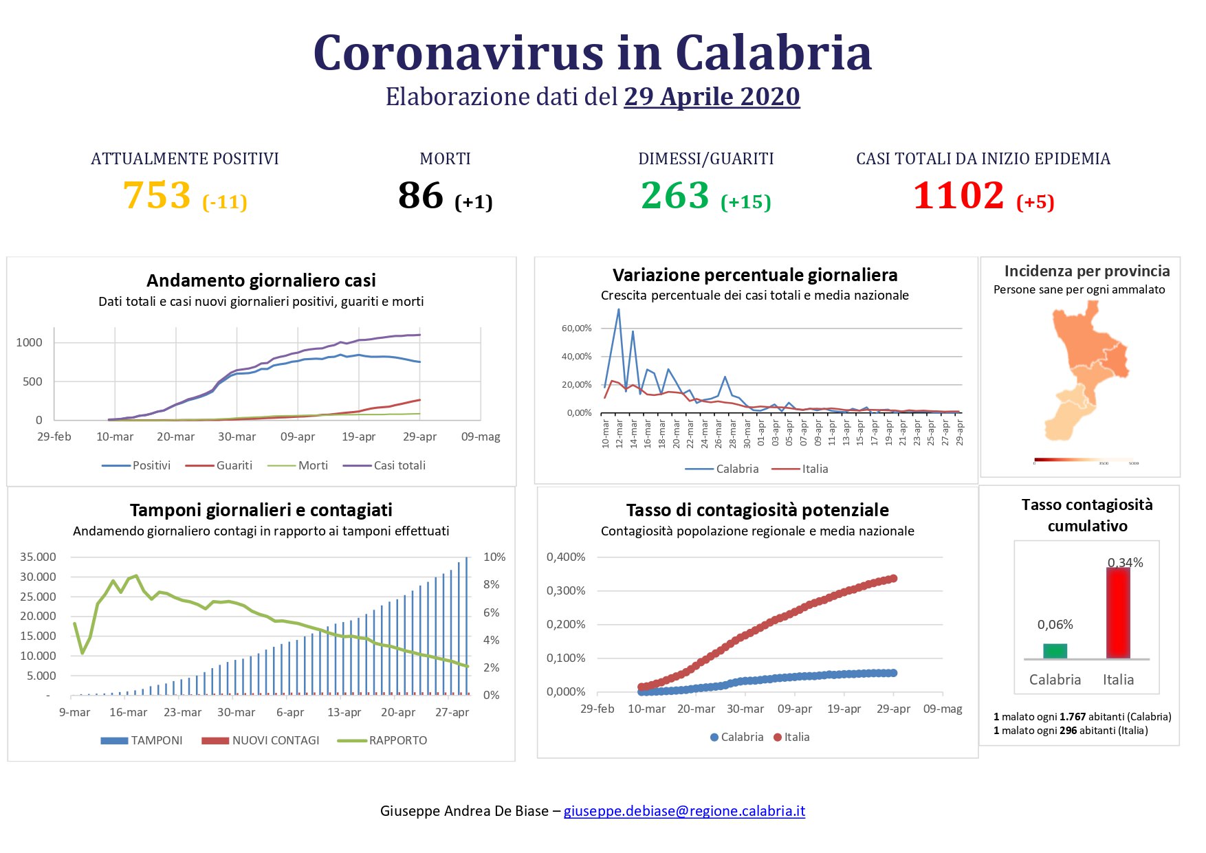 – Cosenza: 24 in reparto; 1 in rianimazione; 306 in isolamento domiciliare; 89 guariti; 28 deceduti.