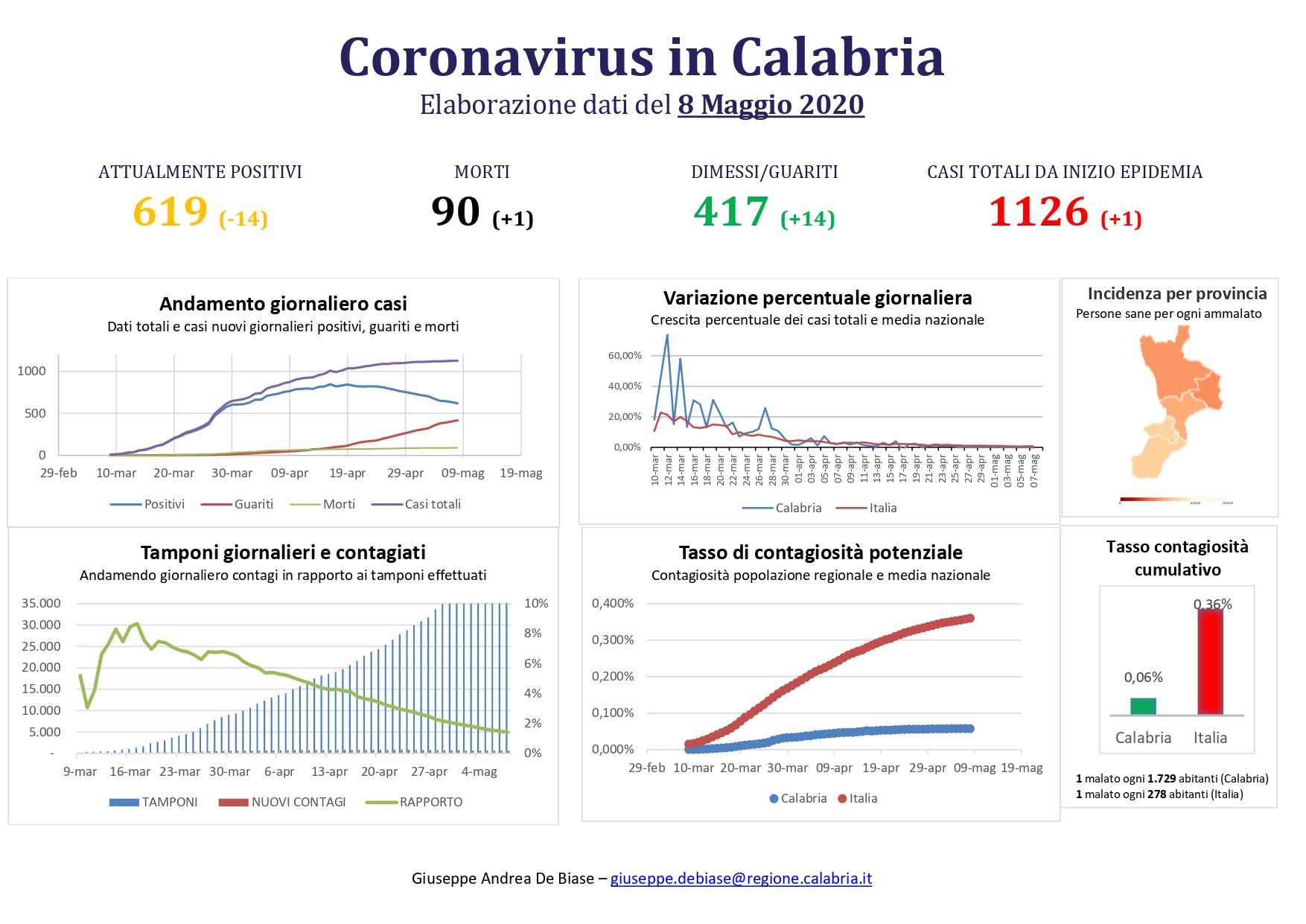 – Reggio Calabria: 12 in reparto; 2 in rianimazione; 130 in isolamento domiciliare; 101 guariti; 16 deceduti.