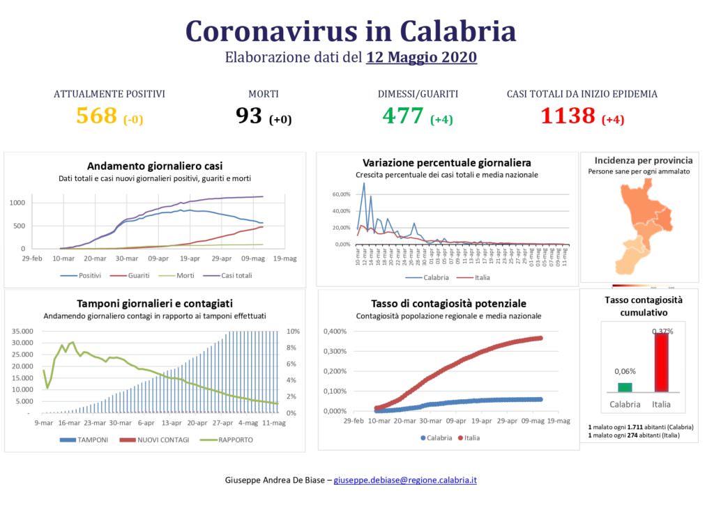 Coronavirus, 4 nuovi positivi. Il totale sale a 1.138 – GRAFICI