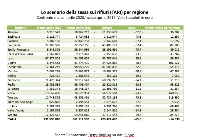 «L’emergenza sanitaria – dichiara il presidente di Demoskopika, Raffaele Rio – si è inevitabilmente abbattuta anche sulle entrate comunali producendo effetti negativi sui sistemi economici locali e, soprattutto, mettendo a rischio alcuni servizi essenziali, non ultimo quello della raccolta e dello smaltimento dei rifiuti. È ipotizzabile che, nel prossimo periodo, tra rinvio del pagamento dei tributi e difficoltà di pagamento per imprese e lavoratori, si consolidi uno scenario di progressiva perdita di liquidità per gli enti locali che potrebbe costringere molti amministratori comunali al taglio dei servizi o, peggio ancora, alla dichiarazione del dissesto finanziario. In questo allarmante contesto, – conclude Raffaele Rio – le misure previste finora nel decreto Rilancio sono necessarie ma ancora insufficienti. Bisogna fare di più».