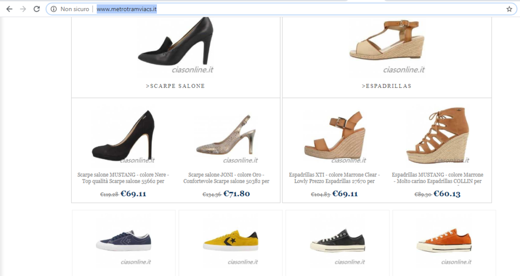 IL SITO DELLA METRO CHE INVECE VENDE SCARPE Chi visitando il sito www.metrotranviacs.it sperava di trovare info utili sullo stato di avanzamento del progetto, degli eventuali Sal o di come le varianti succedutesi nel tempo si sarebbero inserite nella programmazione europea rimarrà deluso. Il sito, recuperabile facendo delle ricerche sul portale della Regione Calabria è interamente dedicato alla vendita di scarpe. Il dominio con gli anni è scaduto e in attesa che si procedesse alla prima posa del binario o anche l’approvazione del piano esecutivo è stato acquistato da una società registrata in Gran Bretagna. Il nuovo proprietario lo ha utilizzato per allestire uno shop online di scarpe. Quanto sia redditizio non è dato saperlo. (m.presta@corrierecal.it)