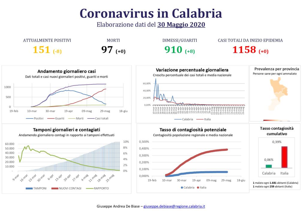 Coronavirus, ancora zero contagi in Calabria. I guariti salgono a 910 – GRAFICI