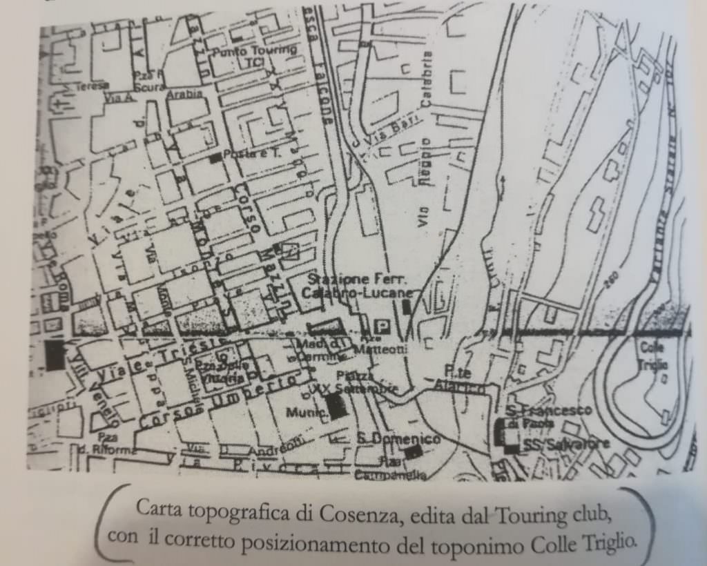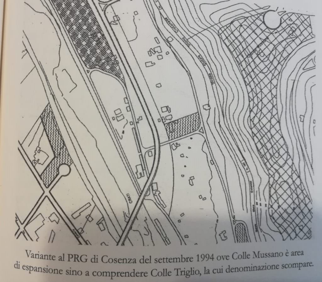 In quella allegata alla variante al Prg del 1994 (vedi sotto) invece Colle Triglio è compreso in Colle Mussano. «L’astuzia è semplice perché i due colli si trovano sullo stesso asse. Colle Triglio a sud-est, Colle Mussano a nord-est di Cosenza».