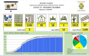 – Crotone: 112 guariti; 6 deceduti. – Vibo Valentia: 1 in isolamento domiciliare; 75 guariti; 5 deceduti.