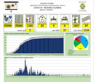– Crotone: 1 in isolamento domiciliare; 112 guariti; 6 deceduti.