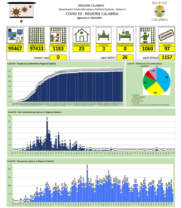 – Crotone: 1 in isolamento domiciliare; 112 guariti; 6 deceduti.
