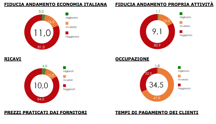 FIDUCIA E CONGIUNTURA Oltre l’80% delle imprese in Calabria ha dichiarato che la situazione economica generale dell’Italia è peggiorata. Ancora più negativo il sentiment, invece, che riguarda l’andamento economico della propria impresa. L’82,9% delle imprese ha ravvisato un peggioramento dell’andamento della propria attività. Il 58% delle imprese in Calabria ritiene che i mesi della riapertura e i mesi estivi (fine aprile – fine settembre 2020) saranno i più difficili per l’andamento economico della propria attività. Il crollo del clima di fiducia purtroppo si accompagna ad un forte calo dei ricavi (l’84% delle imprese ha dichiarato un peggioramento) anche a causa dell’azzeramento dei ricavi nei mesi di marzo e aprile presso alcuni comparti del tessuto produttivo. Resta negativo il sentiment per il prossimo trimestre. In aumento i prezzi praticati dai fornitori: la situazione è peggiorata, in prevalenza per quel che riguarda le vendite al dettaglio di generi alimentari e i servizi alle persone. Il 45% delle imprese lamenta un peggioramento nei tempi di pagamento da parte dei clienti. Le imprese della Calabria hanno un immediato bisogno di liquidità. L’outlook per il prossimo trimestre è decisamente negativo. Alle imprese della regione è necessaria la liquidità per sostenere le spese del personale, i costi per il rispetto dei protocolli di sicurezza, le spese incomprimibili. Il 59% delle imprese della Calabria ha dichiarato che il periodo più difficile per quanto riguarda il fabbisogno finanziario sarà proprio quello compreso tra aprile e settembre 2020.