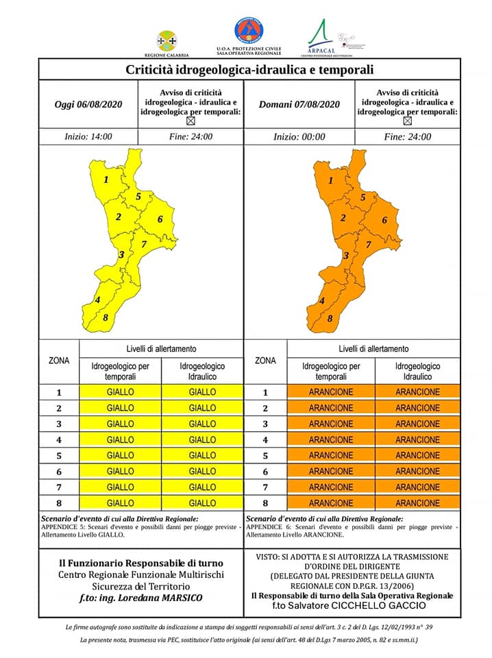Il messaggio è stato diffuso come sempre dalla Protezione civile della Calabria e riguarda sia le criticità meteo marine che idrogeologiche